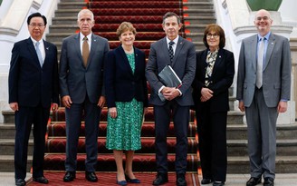 Đoàn nghị sĩ Mỹ (4 người ở giữa) thăm Đài Loan ngày 30.3 Ảnh: Reuters