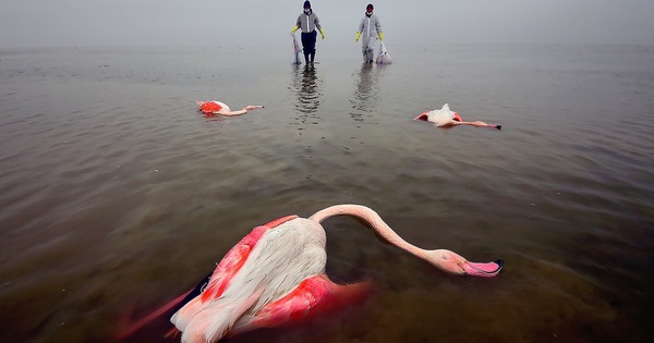 Do ô nhiễm và chất độc ở đầm phá Miankala (Iran), những con chim bị chết và xác của chúng được các nhân viên môi trường địa phương thu nhặt để ngăn dịch bệnh lây lan.