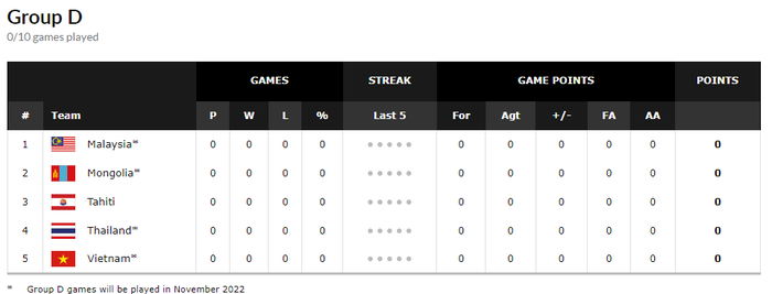 Theo lịch thi đấu, đội tuyển bóng rổ Việt Nam sẽ có quãng thời gian thi đấu khá căng thẳng. Họ sẽ đụng độ Tahiti trong trận ra quân vào ngày 10/11. Sau khi được nghỉ ngơi 1 ngày, các chiến binh “Cờ đỏ sao vàng” sẽ có chuỗi 3 trận đấu liên tiếp từ ngày 12-14/11, lần lượt đối đầu với Thái Lan, Mông Cổ và Malaysia.