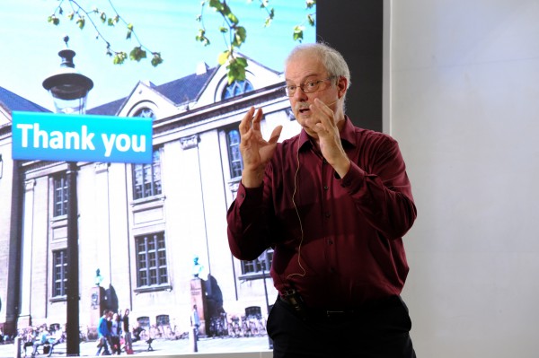 Trước khi bắt đầu bài thuyết giảng của mình, GS Meldal đã chia sẻ trước sinh viên huy chương Nobel của mình.