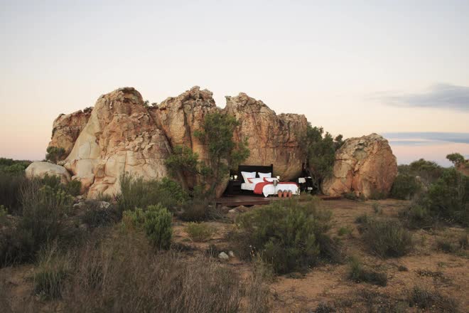 Một buổi sáng thức dậy, bạn sẽ thấy xung quanh mình là những bức tường là những vách đá, mở rèm cửa, phóng tầm mắt sẽ là sa mạc mênh mông. Đó chính là trải nghiệm mà bạn sẽ có được khi lưu trú tại khu nghỉ dưỡng nằm trong khu bảo tồn thiên nhiên Kagga Kamma.