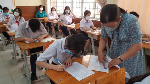 Theo đó, ngoài việc thông báo quy định thí sinh và các thành viên tham gia công tác thi phải đeo khẩu trang trong suốt thời gian tại điểm thi, Sở GD-ĐT thông báo những vật dụng thí sinh không được phép mang vào phòng thi bao gồm: giấy than; bút xóa, đồ uống có cồn, vũ khí và chất gây nổ, gây cháy, tài liệu, thiết bị truyền tin hoặc chứa thông tin có thể lợi dụng để gian lận trong quá trình làm bài thi.