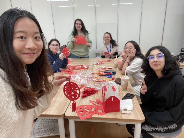 Sinh viên quốc tế quây quần làm đồ trang trí tết |
