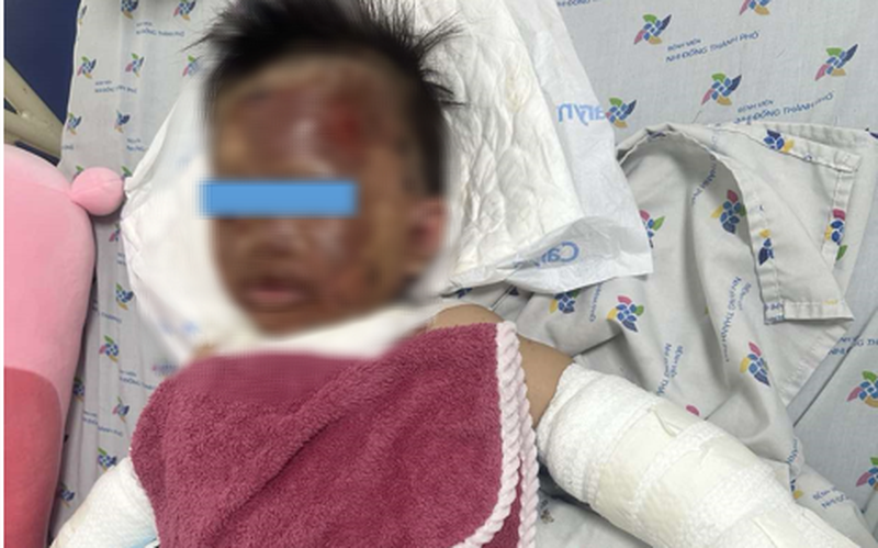 Tại bệnh viện, ghi nhận bệnh nhi có biểu hiện sốc với mạch nhẹ, chi mát, huyết áp khó đo, diện tích bỏng khoảng 44%. Các bác sĩ đã truyền dịch chống sốc, hỗ trợ hô hấp, dùng thuốc giảm đau và chăm sóc vết thương bỏng. Sau đó, bệnh nhi được chuyển đến Khoa Hồi sức ngoại điều trị tiếp.
