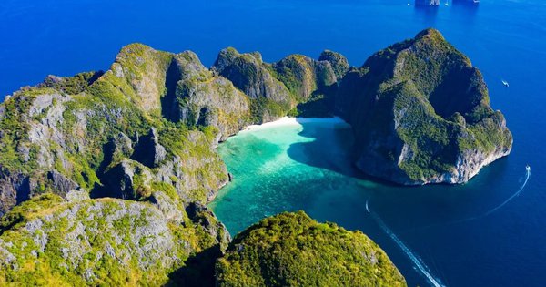 Khi những chiếc thuyền tham quan tiến vào vùng nước màu ngọc lam của Vịnh Maya, một sợi dây phao nổi đã giữ chúng đậu cách bãi biển vài trăm mét. Du khách chỉ được thưởng thức vẻ đẹp của bãi biển từ xa trước khi những chiếc thuyền quay đầu lại để di chuyển vòng ra phía sau vịnh. Tại đây có một bến tàu nổi để thuyền được đỗ lại trong một khoảng thời gian ngắn. Từ đó, du khách xuống thuyền và đi bộ dọc theo một con đường bằng gỗ nổi để đến thăm bãi biển cát trắng nổi tiếng. Đây là nơi từng xuất hiện trong bộ phim The Beach năm 2000 do ngôi sao nổi tiếng Leonardo DiCaprio đóng vai chính.