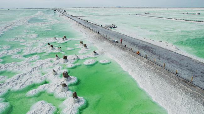 Trên hồ muối Sát Nhĩ Hãn có 32 km đường sắt và xa lộ chạy xuyên qua. Con đường này được ví là “Cầu muối vạn trượng” nổi trên hồ muối mênh mông.