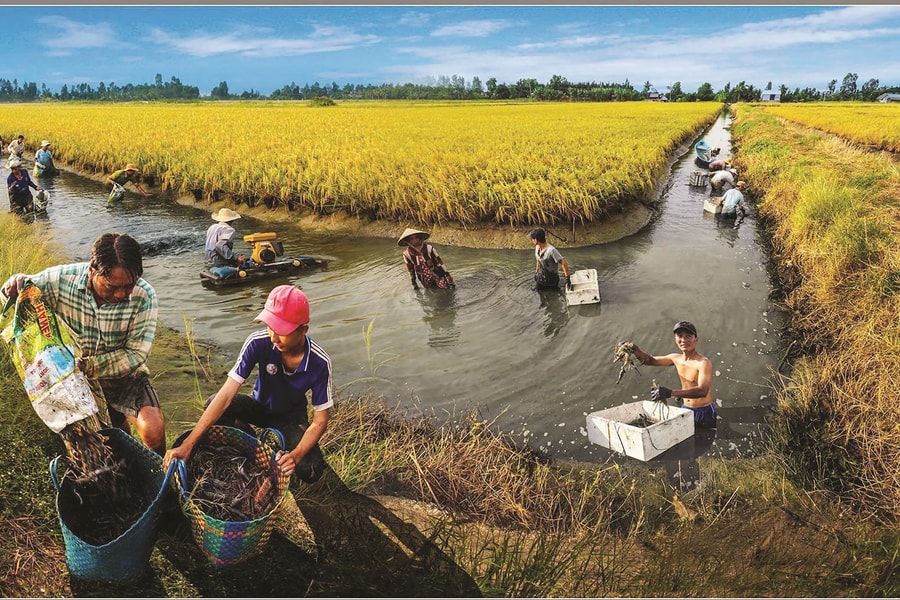 Mô hình canh tác lúa – tôm mang lại thu nhập cao cho nông dân Cà Mau, thích ứng biến đổi khí hậu. Ảnh: Thanh Dũng