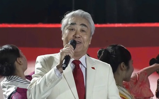 NSND Quang Thọ thể hiện ca khúc Ba Đình nắng tại điểm cầu ở Hà Nội, gợi nhớ lại khoảnh khắc thiêng liêng của dân tộc Ảnh: BTC