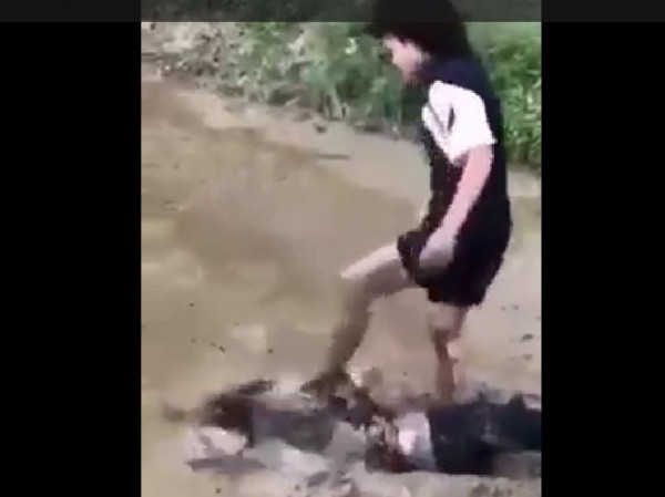 Nữ sinh lớp 9 đạp vào mặt khi nữ sinh lớp 8 đã bị đánh ngã xuống ruộng bùn |