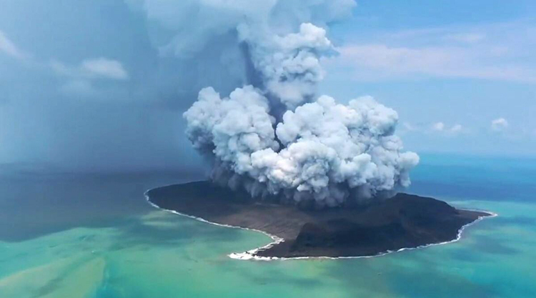 Vụ phun trào của Tonga, bắt đầu vào ngày 14/01và đạt đỉnh hai ngày sau đó. Đây là vụ phun trào mạnh nhất từng được chứng kiến trên Trái đất trong nhiều thập kỷ.