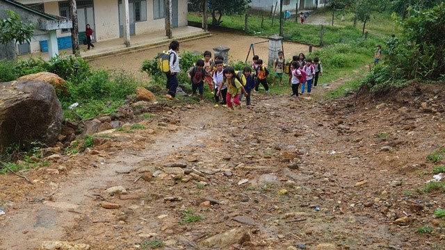 Đường đến lớp của học sinh thôn Quế