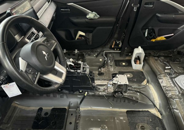 Mitsubishi Xpander bị nước ngập vào bệ trung tâm. (Ảnh Hải Linh)