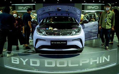 Khách tham quan mẫu xe điện BYD Dolphin tại một triển lãm xe ở Thái Lan vào năm 2023