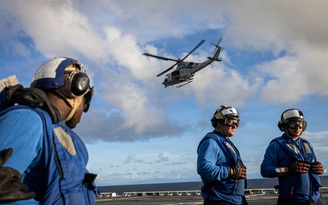 Trực thăng UH-1Y hoạt động trên tàu vận tải đổ bộ USS Fort Lauderdale của Mỹ tại Caribbean ngày 17.11 ẢNH: REUTERS