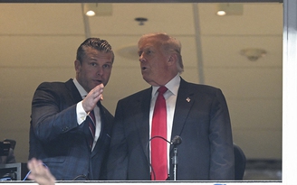 Tổng thống Trump và Bộ trưởng Hegseth (trái) Ảnh: AFP