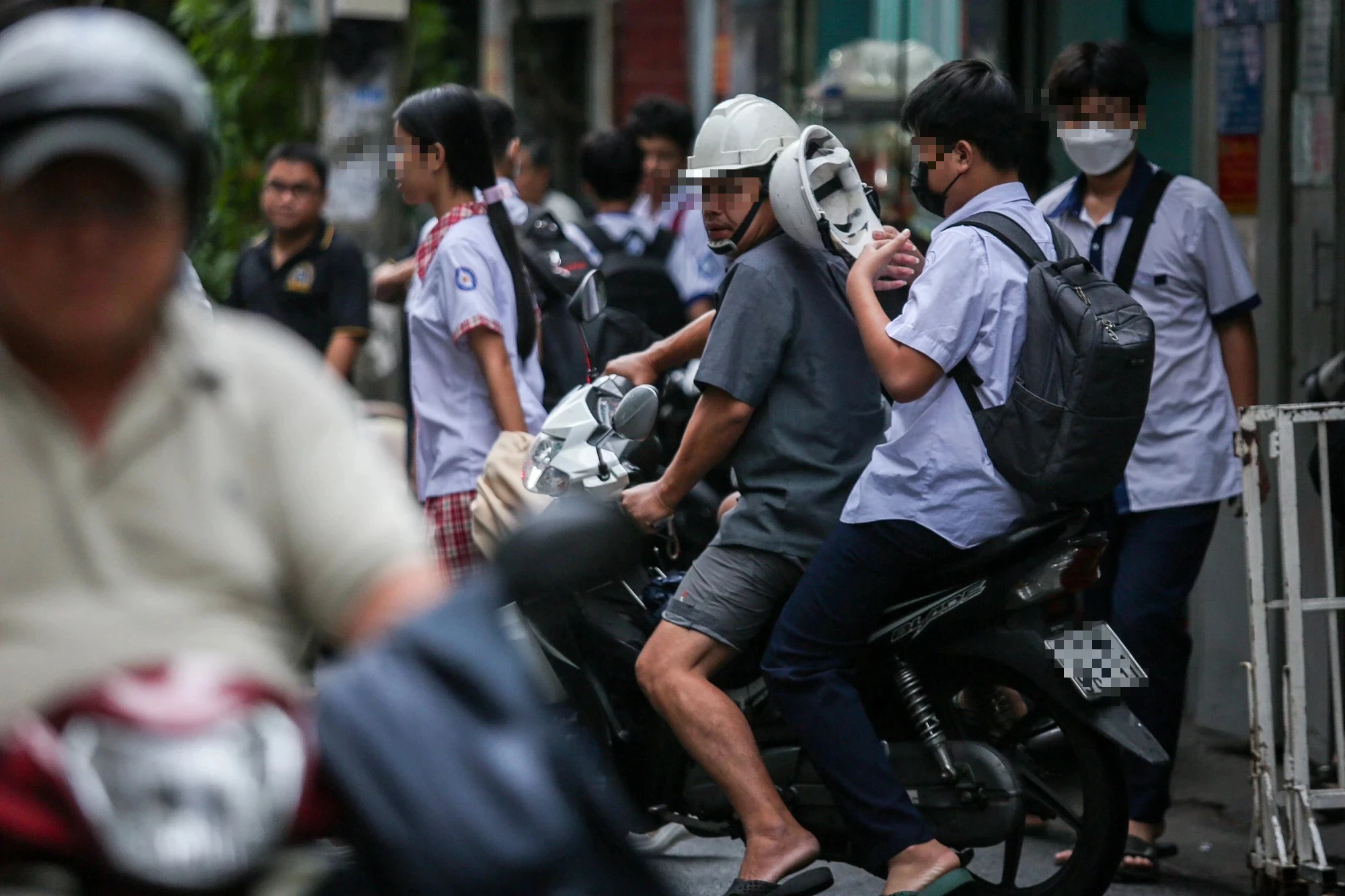 Học sinh vừa tan học chính khóa, được cha mẹ chở tới lớp học thêm lúc 17 giờ chiều qua, 23.11 trong con hẻm đường Trần Đình Xu, Q.1, TP.HCM
