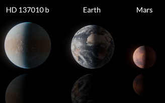 So sánh kích thước của HD 137010 b với trái đất và sao Hỏa Ảnh: Caltech