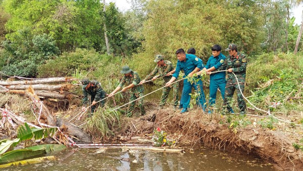 Tiếp nhận tin báo, Ban CHQS xã Long Vĩnh tiến hành khảo sát, cắm biển cảnh báo khu vực nguy hiểm, đồng thời báo cáo về Ban CHQS H.Duyên Hải xử lý.
