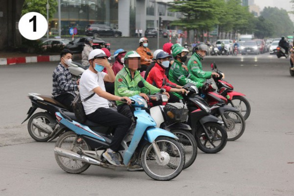 Như Thanh Niên đã thông tin, theo ghi nhận thời gian gần đây tình trạng vi phạm luật giao thông như vượt đèn đỏ, hay vượt qua nút giao khi đèn đỏ còn khoảng 4 – 5 giây, dừng xe không đúng nơi quy định… diễn ra trên nhiều tuyến phố ở Hà Nội. Hành vi này không những gây nguy hiểm cho bản thân người vi phạm và những người lưu thông trên đường mà còn là tác nhân gây ách tắc, ùn ứ giao thông. Ðiển hình, ở nhiều ngã ba, ngã tư, xe ôm công nghệ dừng chờ đèn đỏ nhưng đỗ xe vượt quá đường kẻ vạch liền quy định, thậm chí còn dàn hàng chắn ngang giữa đường đi cản trở các phương tiện đang di chuyển (ảnh 1).