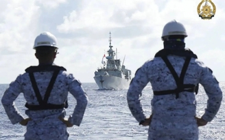 Quân nhân Philippines quan sát tàu hộ tống HMCS Montreal (FFH336) của Canada trong cuộc tập trận chung tại vùng biển gần Philippines năm 2024 ẢNH: QUÂN ĐỘI PHILIPPINES
