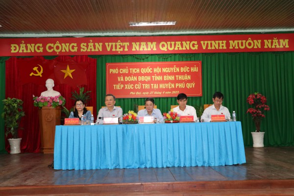 Chiều 27.4, Phó chủ tịch Quốc hội Nguyễn Đức Hải, Chủ nhiệm Ủy ban Khoa học – Công nghệ và môi trường Lê Quang Huy và các thành viên Đoàn ĐBQH đơn vị Bình Thuận đã có buổi tiếp xúc cử tri tại huyện đảo Phú Quý.