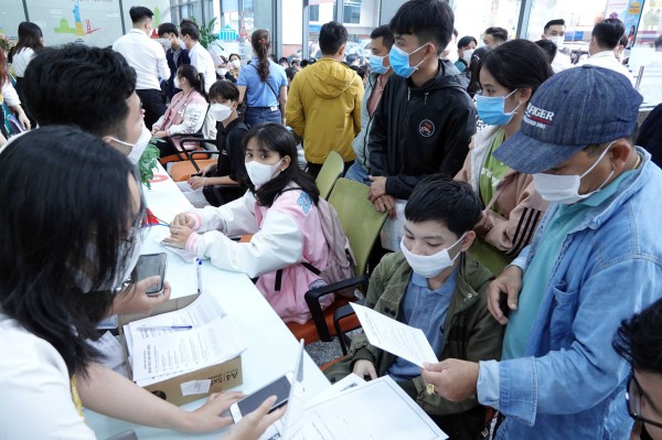 Phụ huynh cùng thí sinh đến các trường làm thủ tục nhập học những ngày gần đây |