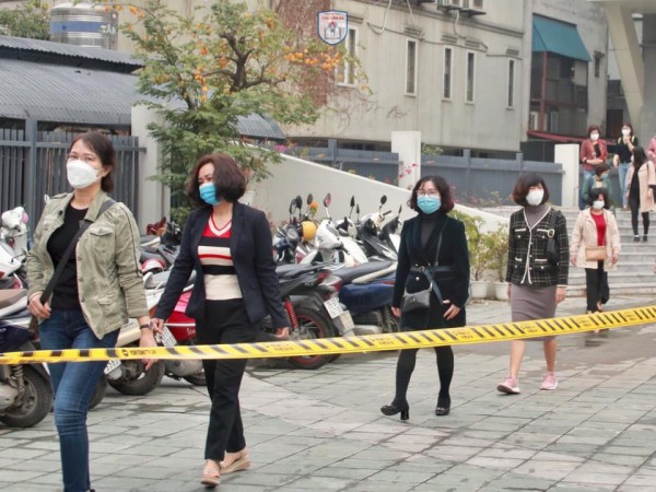 | Giáo viên Trường THCS Chu Văn An (Q.Tây Hồ, Hà Nội) diễn tập đón học sinh trở lại trường |