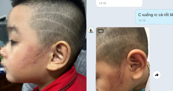 Hình ảnh bé Kh.bầm tím mặt và tin nhắn xin lỗi phụ huynh từ cô giáo