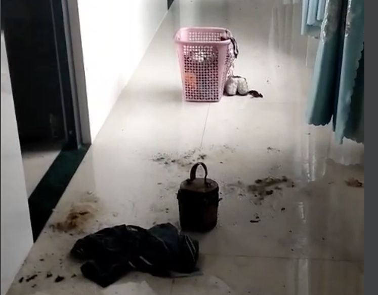 Vật dụng trong phòng bị cháy được di chuyển ra bên ngoài hành lang