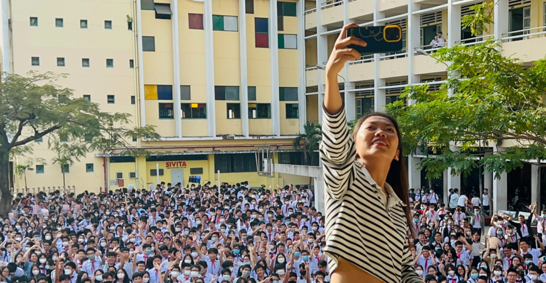 Quả bóng vàng Huỳnh Như chụp hình cùng hàng ngàn học sinh