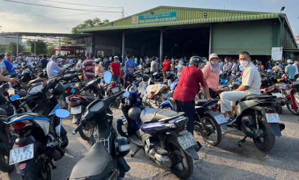 Tài xế xếp hàng chờ lấy phiếu hẹn tại một trung tâm đăng kiểm ở TP.HCM sáng 24.4
