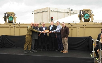 Các quan chức quân đội Israel và thành viên Công ty Rafael tại buổi lễ bàn giao laser Tia Sắt ngày 28.12 ẢNH: BỘ QUỐC PHÒNG ISRAEL