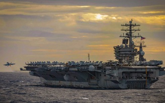 Chiến đấu cơ trong một lần cất cánh từ tàu sân bay Mỹ USS Nimitz Ảnh: Hải quân Mỹ