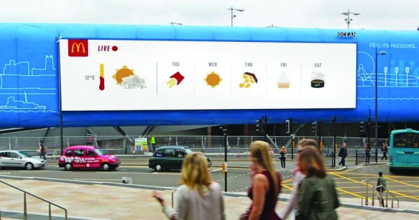 Giống như tên gọi của mình, quảng cáo theo thời tiết là hình thức quảng cáo sử dụng những hình thái thời tiết hiện có, hoặc theo dự báo, để cho ra đời một quảng cáo biến đổi tức thời phù hợp với thời tiết ngay lập tức. Quảng cáo theo kiểu này sẽ mang tính ngữ cảnh rất cao, truyền tải được thông điệp cá nhân mạnh mẽ đến người xem và kích thích họ mua sắm.
