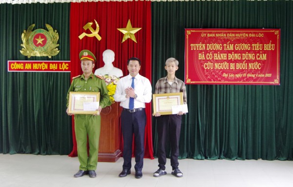 UBND H.Đại Lộc (Quảng Nam) tuyên dương, khen thưởng 2 cá nhân có hành động dũng cảm khi lao xuống sông Vu Gia cứu phụ nữ đuối nước.