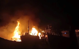 Quảng Ngãi: Cháy 4 tàu cá khi đang neo đậu trên sông Trà Bồng