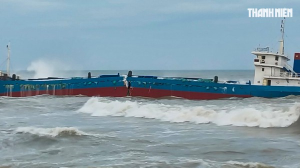 Tàu sắt Hoàng Gia 46 bị thủng đáy trôi dạt vào bờ biển Sa Huỳnh (Quảng Ngãi)