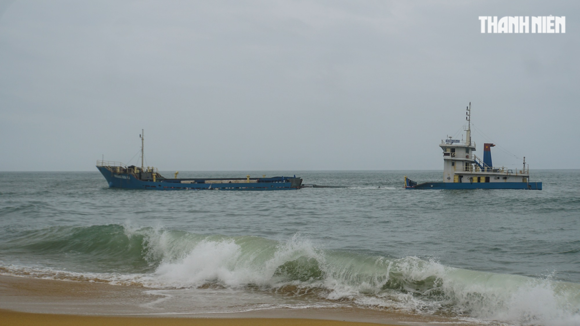Sóng còn quá lớn nên các phương tiện vẫn chưa tiếp cận được tàu Hoàng Gia 46, để hút 8.000 lít dầu đưa lên bờ
