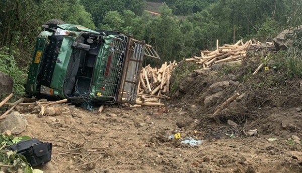 Khoảng 18h20 phút ngày 22/4, xe ôtô tải 76C-065.94 kéo theo sơmi rơmoóc 15R-103.95, chở gỗ keo đang di chuyển theo hướng huyện Ba Tơ đi Cảng Dung Quất (huyện Bình Sơn, tỉnh Quảng Ngãi), đến Km 23+300 Quốc lộ 24 (đoạn Suối Loa, xã Ba Động, huyện Ba Tơ) thì bị lật.