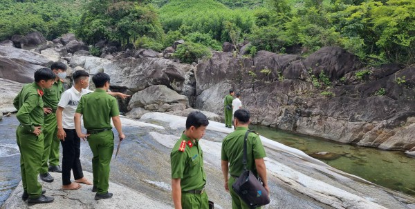 Lực lượng công an tại hiện trường 2 học sinh tắm suối tử vong |