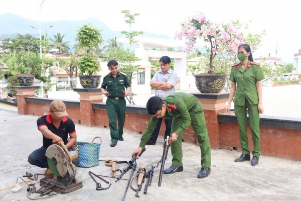 Trước đó, Công an H.Trà Bồng đã triển khai nhiều biện pháp như: tuyên truyền, vận động và kiểm tra nhằm phát hiện, xử lý, thu hồi các loại vũ khí, vật liệu nổ, công cụ hỗ trợ cất giấu trái phép.