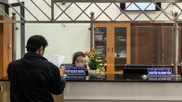 Người dân đến UBND TT.Sông Vệ, H.Tư Nghĩa (Quảng Ngãi) làm thủ tục hành chính để hoàn thiện hồ sơ đăng ký cấp GCNQSDĐ