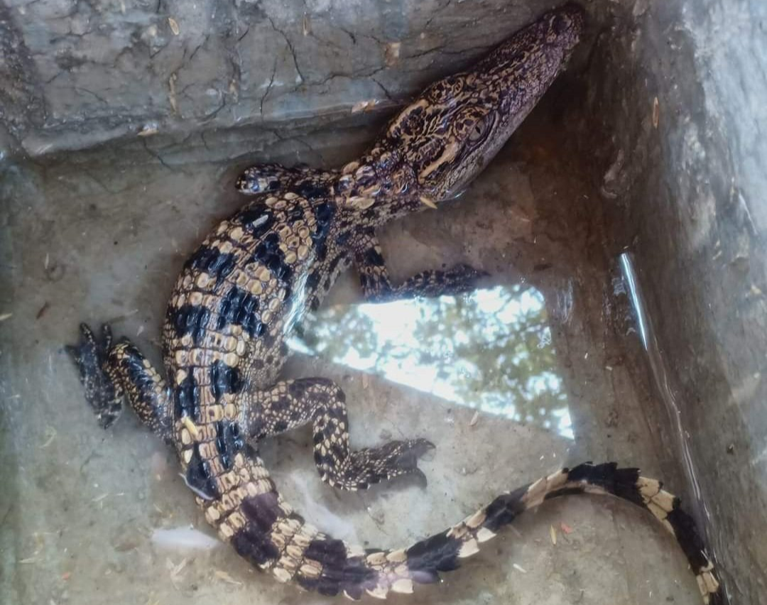 Con cá sấu vừa được phát hiện dưới mương nước, gây lo lắng cho người dân địa phương