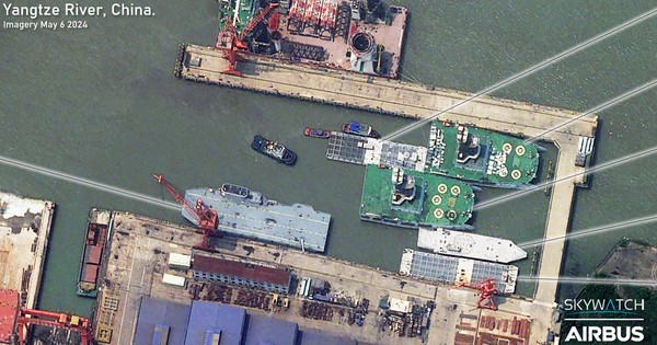 Theo tường thuật của Naval News ngày 15.5, hình ảnh vệ tinh về địa điểm có nhà máy đóng tàu Giang Tô Đại Dương bên sông Trường Giang cho thấy Trung Quốc đã bí mật đóng một tàu sân bay mới để chuyên chở các UAV cánh cố định. Việc chế tạo con tàu này chưa từng được Bắc Kinh công bố.