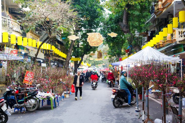 Năm nay, chợ hoa truyền thống phố cổ Hà Nội được tổ chức trên các tuyến phố Hàng Lược, Hàng Khoai, Hàng Rươi, Hàng Mã, không gian bích họa phố Phùng Hưng.