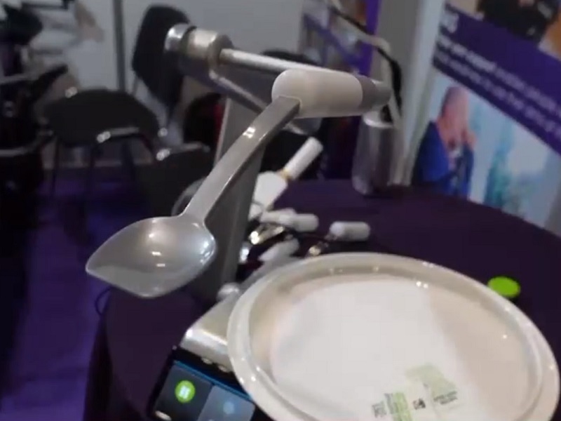 Một sản phẩm đáng chú ý khác tại triển lãm là chiếc thìa robot, giúp những người khuyết tật tay có thể ăn uống thuận tiện và chủ động hơn.
