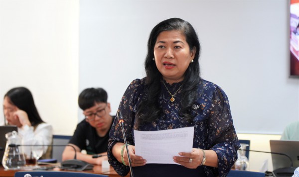 Phó giám đốc Sở Nội vụ TP.HCM Nguyễn Thị Hồng Thắm trao đổi tại buổi họp báo chiều 10.8