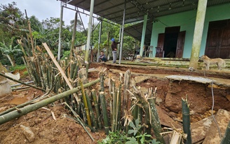 “Do mưa kéo dài nhiều ngày nên trước phần sân nhà của gia đình từ mấy hôm trước đã xuất hiện các vết rạn nứt. Đến rạng sáng nay 5.11, toàn bộ phần sân của gia đình bị sụt lún. Trên tường và sàn nhà bắt đầu có vết nứt, khu vực vườn quanh nhà cũng có sạt lở theo vệt kèm nước chảy ra”, bà Thương nói.