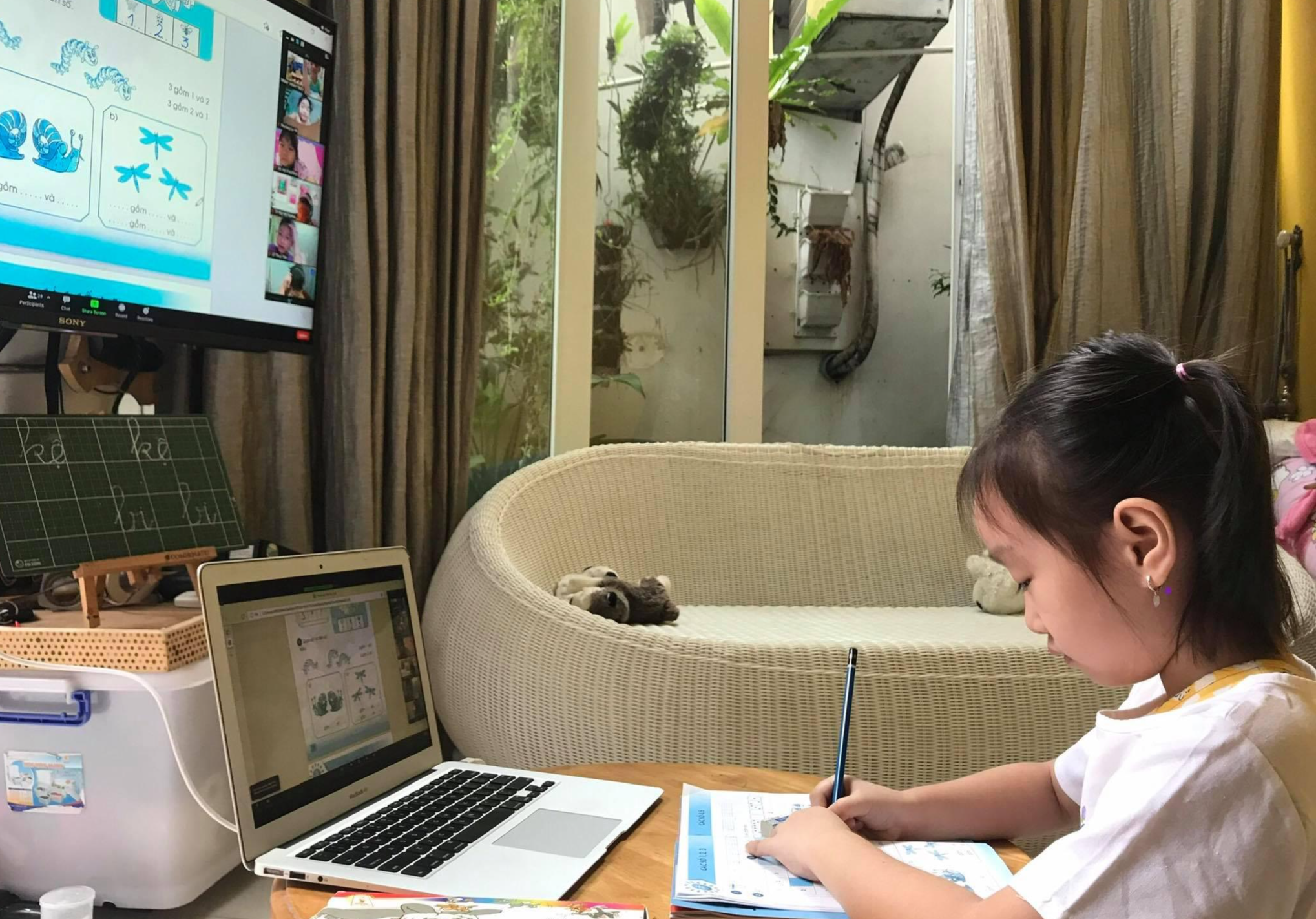 Học sinh lớp 1 Trường tiểu học Nguyễn Huệ (Q.1) học trực tuyến khi chưa đi học trở lại