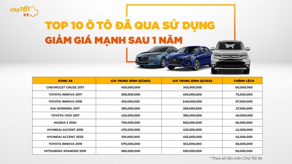 Tốt 10 ô tô cũ giảm giá mạnh sau một năm |